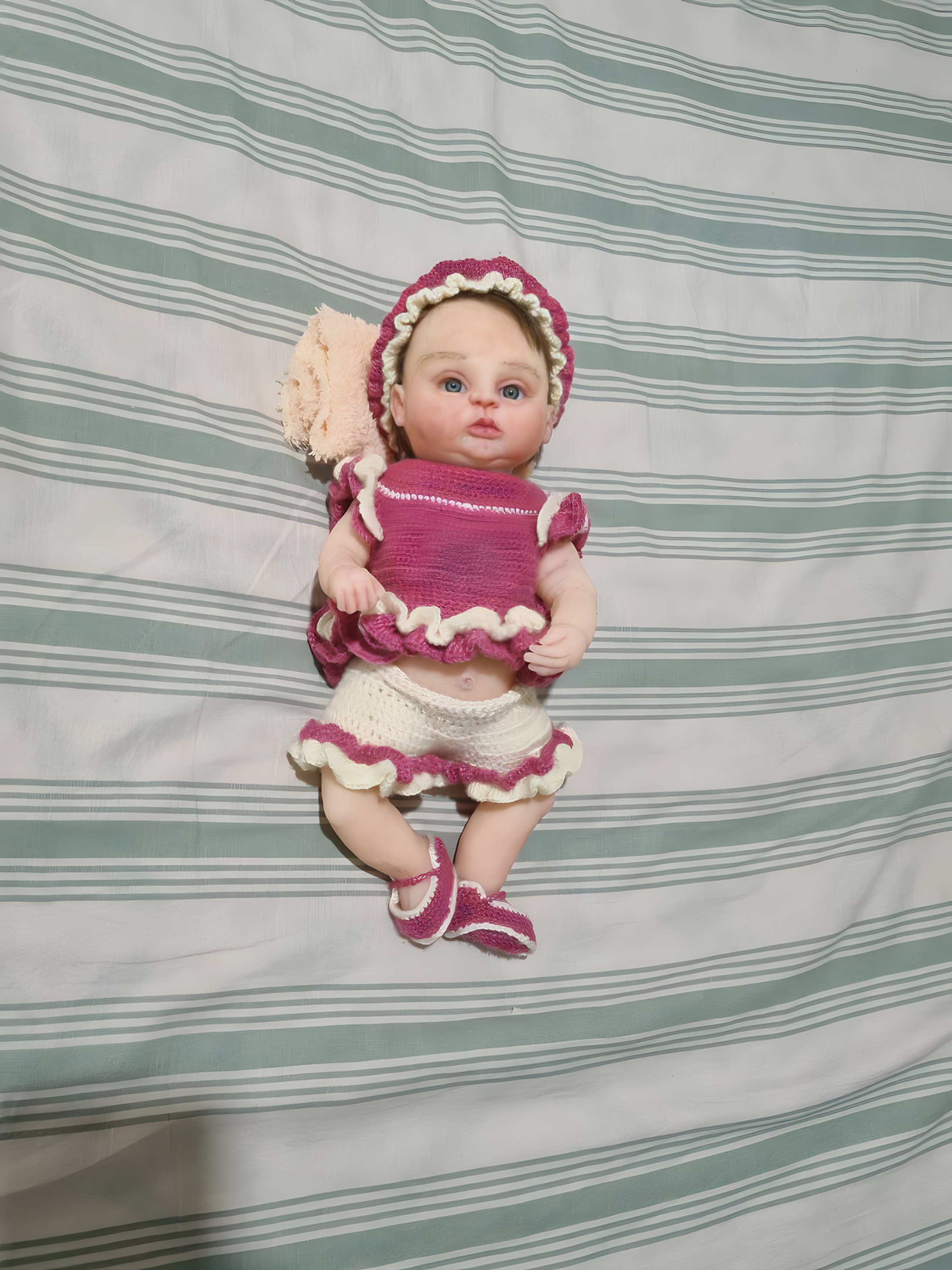 سلام واحترام خدمت شما مشخصات این نی نی ۴۲ سانتی تمام بدن :سیلیکونی سبک سازه :هایپررئال تمام مراحل ازصفر دستساز هست و ازمواد اولیه جون گرفته وضعیت چشم: چشم باز موی سر کاشت دونه ای طبیعی سایز عروسک: ۴۱ سانت وزن عروسک: ۱۹۰۰ گرم جنسیت هم دختر موجوده وهم پسر همراهش یک دست لباس کامل پستونک، بند پستونک، شونه ،شامپو، کرم بچه شیشه شیر ،جغجغه ،عروسک دستی کوچولو ،پوشک داره لباس دوم وسوم جای خواب هزینه اضافه داره که باید جدا بدید کار تو سایته که تو بایو پیج هست